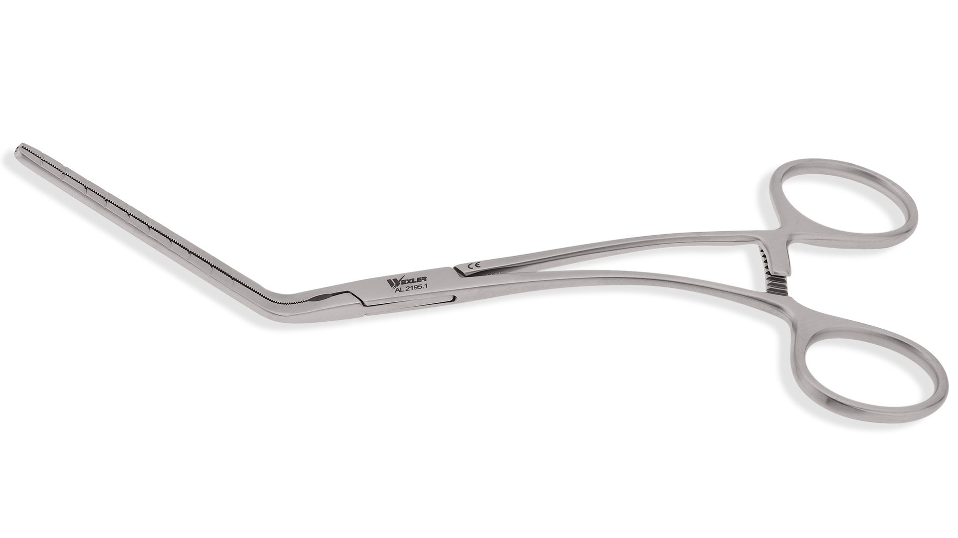 Cooley Pediatric Clamp - 60° Angled Long Cooley Atraumatic jaws, Curved Shanks, Stainless Steel, 7.25'' (18.5cm)