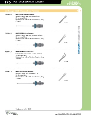 VL1034.3 MICS 23G TC Coated Forceps VL1040.3 MICS 23G Serrated Forceps