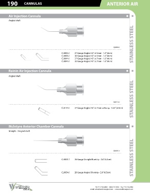 190 CANNULAS ANTERIOR AIR IRRIGATING CANNULAS 191