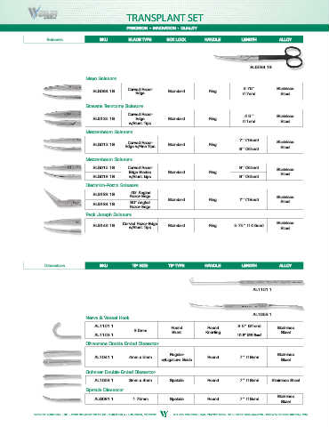 Dissectors SKU TIP SIZE TIP TYPE HANDLE LENGTH ALLOY