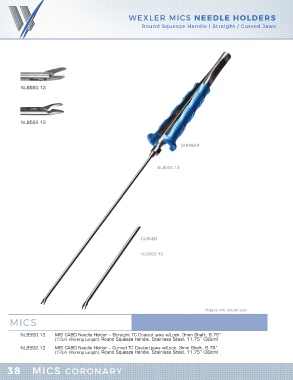 WEXLER MICS NEEDLE HOLDERS Round Squeeze Handle | Straight / Curved Jaws NL8590.13 NL8592.13 Images not actual size MICS 38 MICS CORONARY