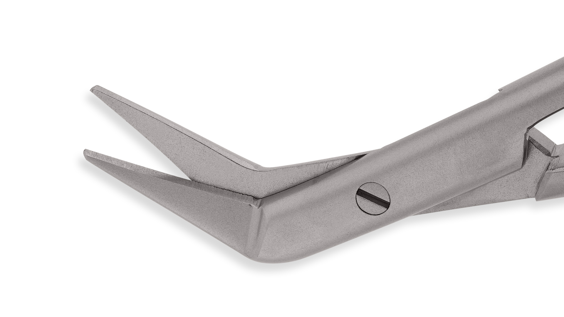 Precision Micro Scissors - 45° Angled Right, Micro Fine Blades, Flat Bayonet Handle w/Shanks Bent Down, Stainless Steel, 8'' (20cm)