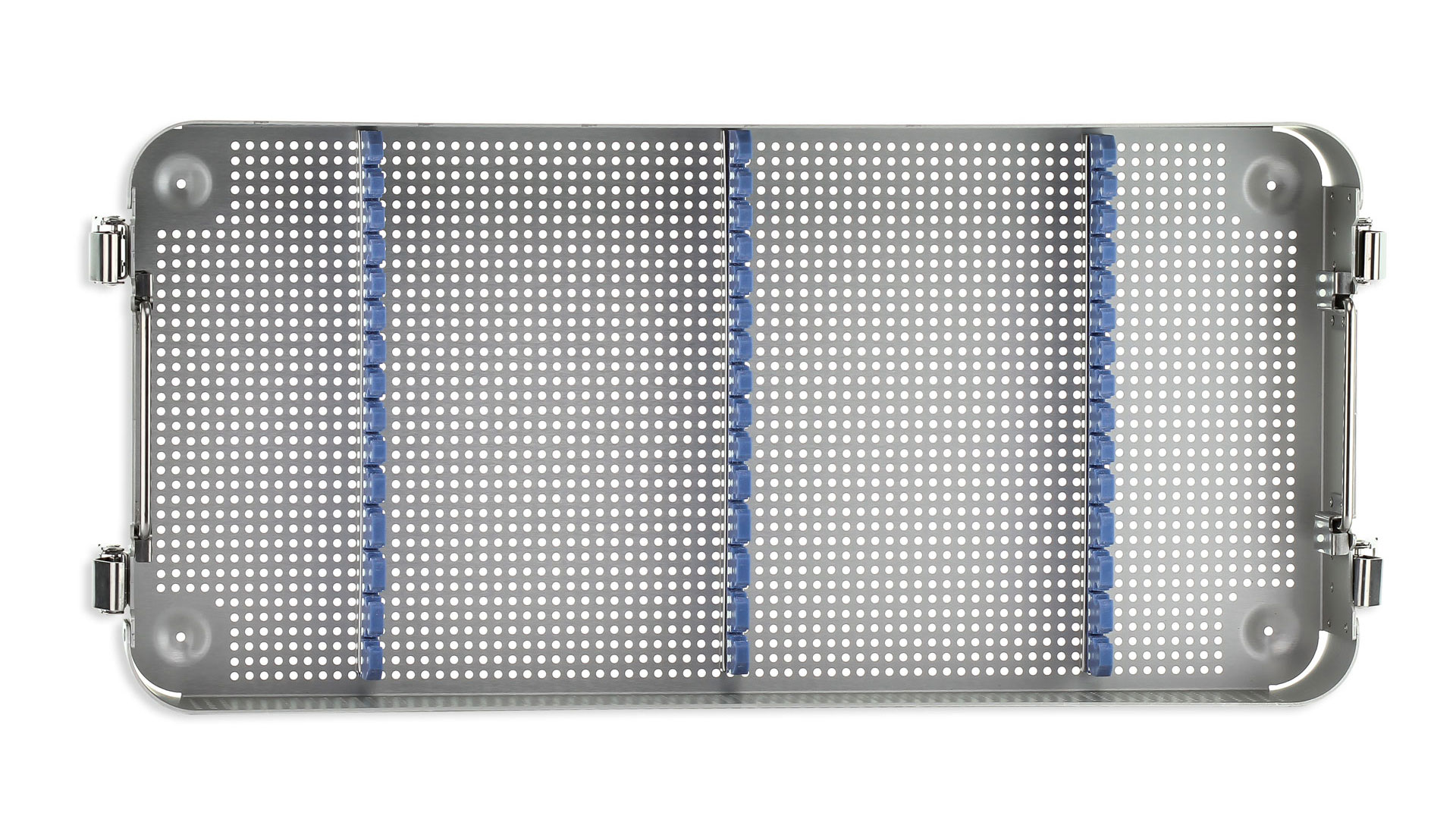 Wexler Metal Sterilization Tray - Single level w/Silicone Brackets, 10.5''x21.5''x2.5'' (26.6x53.3x6.3cm)