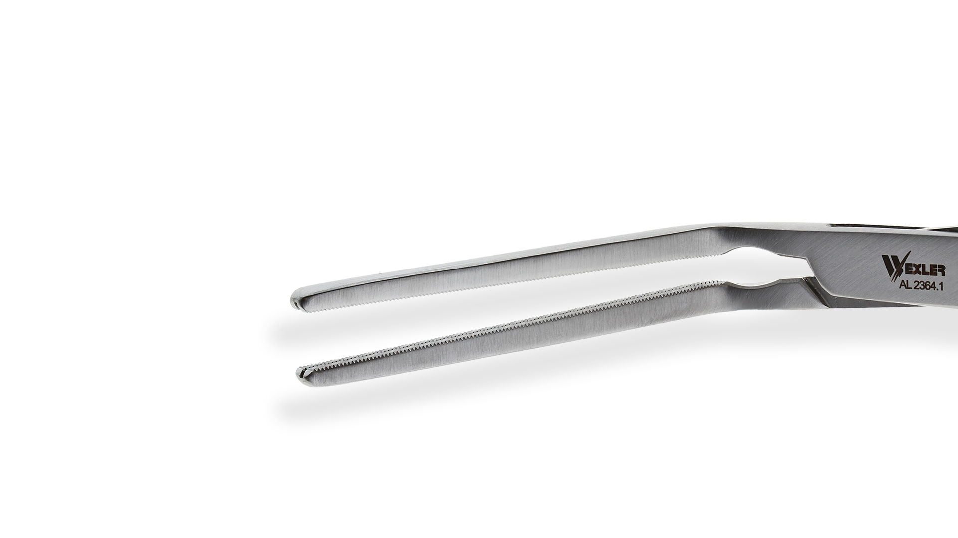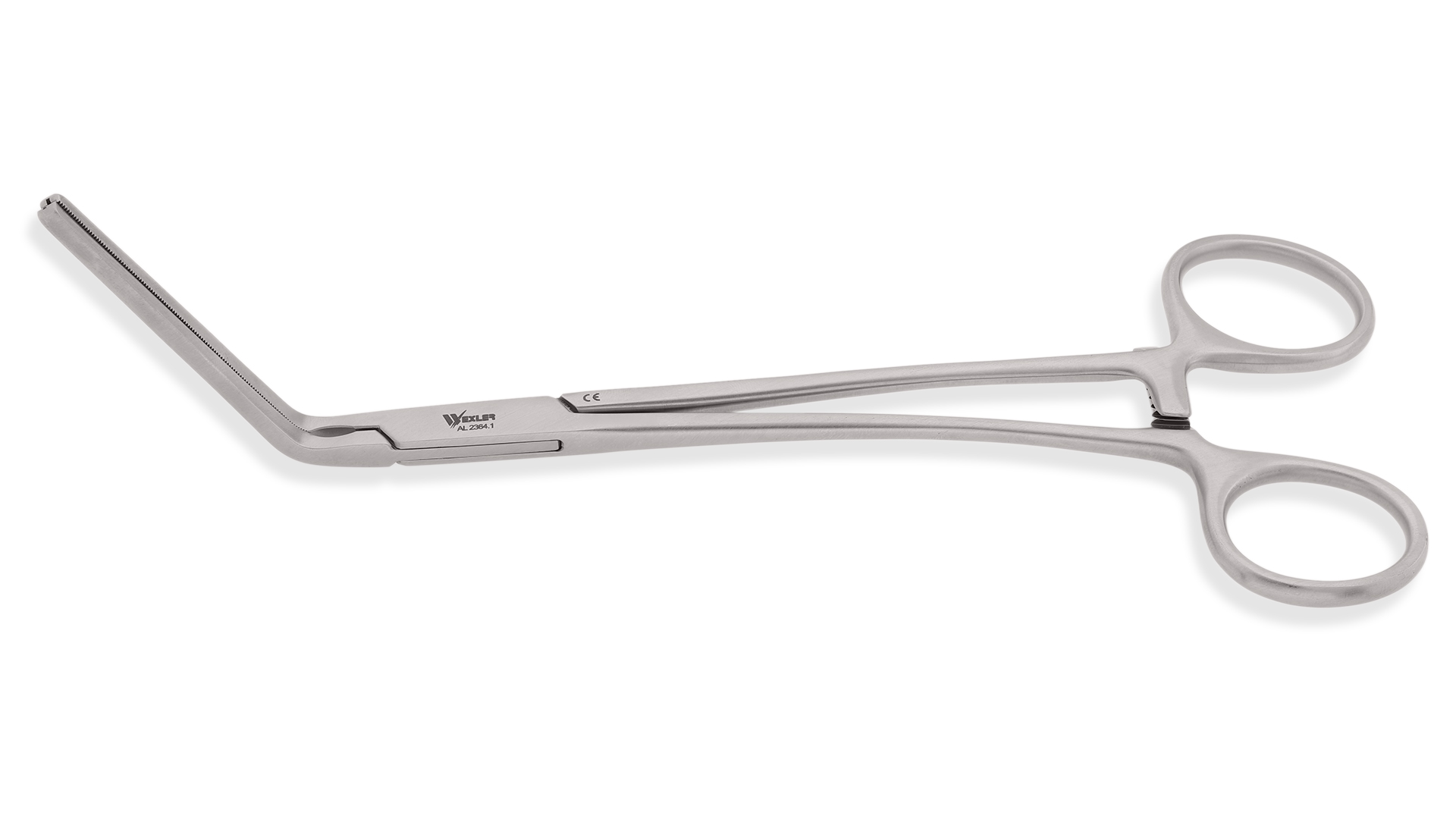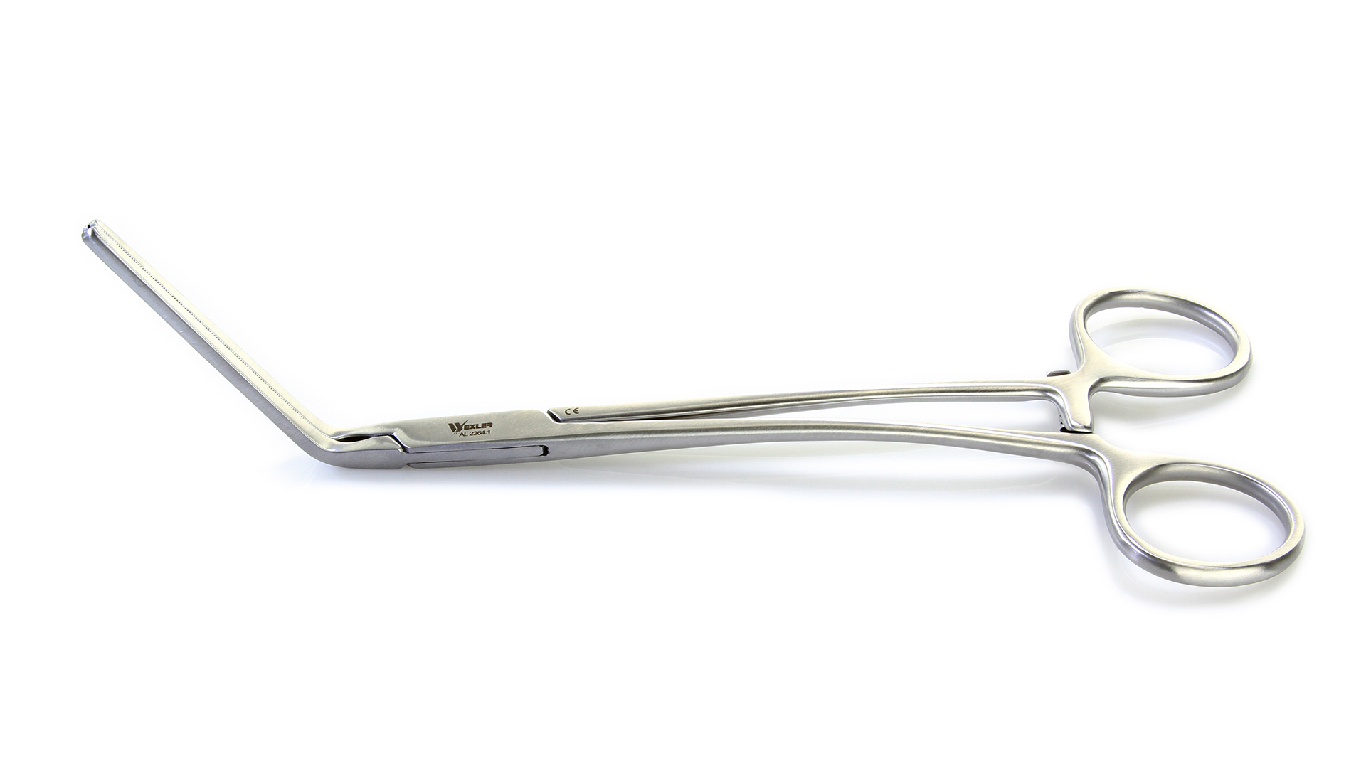Wexler Multi-Purpose Clamp - 60° Angled 55mm Cooley Atraumatic jaws, Slightly Curved Shanks, Stainless Steel, 8.23'' (20.9cm)
